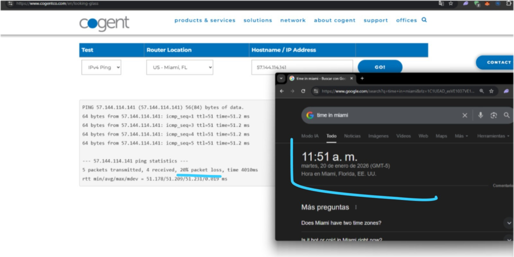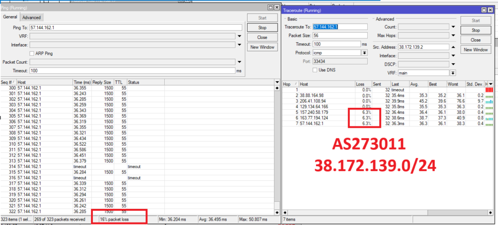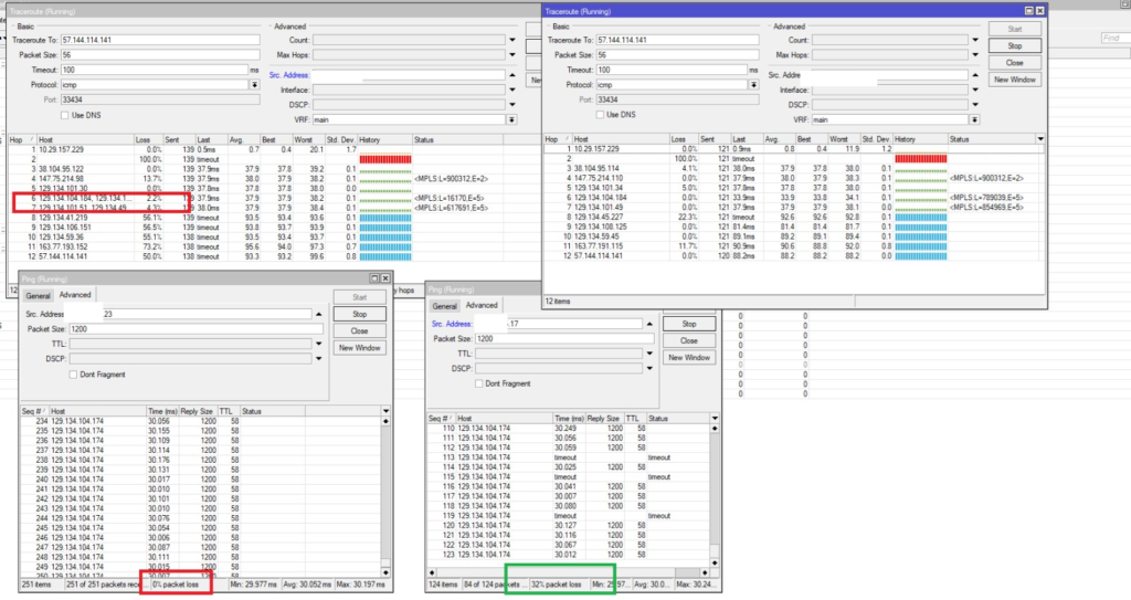 There is packet loss and probably flapping on a BGP instance, OSPF, or some IGP within Meta’s network. I believe it is between 129.134.101.34, 129.134.104.84, and 129.134.101.51. It is possible that it’s a faulty interface in a bundle or some hardware issue that a “show interface status” doesn’t reveal, which is why I’ve failed to report this problem through your NOC.
